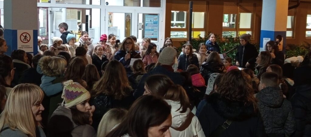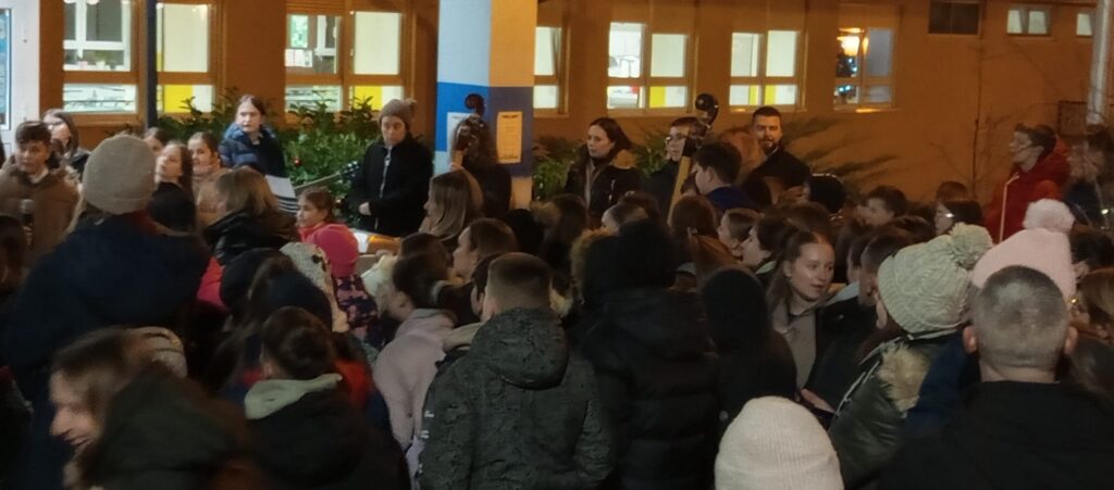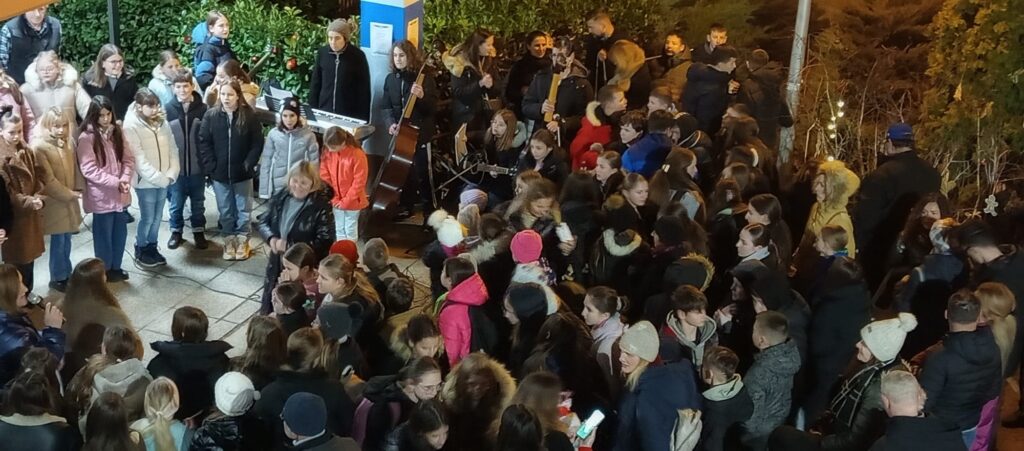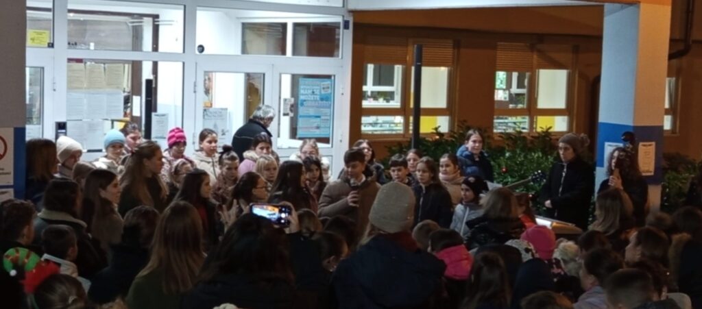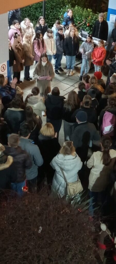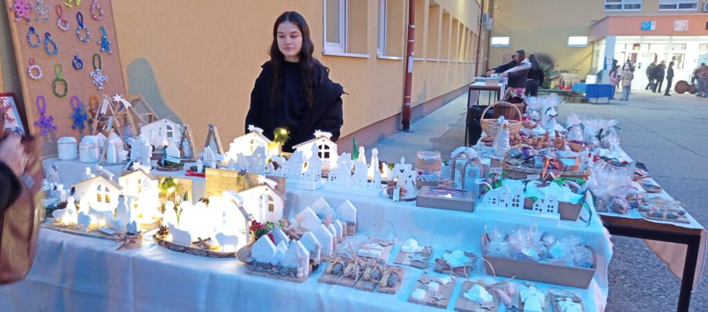 Božićni sajam otvoren je nastupom školskog zbora, koji su vodile profesorice Katarina Knežević i Marica Balog, a pjesmom su dodatno obogatile svečani ugođaj i unijele radost među okupljene.
