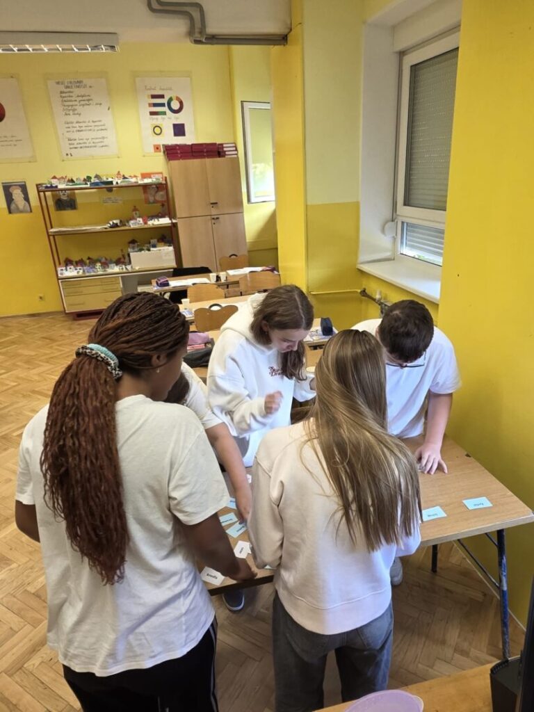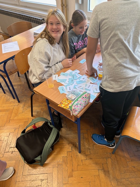 I ove godine Europski dan jezika (26. rujna) u našoj školi obilježen je na kreativan i zabavan način! Naši učitelji njemačkog jezika, Matija Jurica Vrščak i Mara Pekez, pripremili su pravu malu jezičnu avanturu. Učenici 5. a razreda te šestaši koji uče njemački kao drugi strani jezik sudjelovali su u igrama, uživali u muffinima i cedeviti, te kroz kviz posvećen jezicima Europe obnovili i proširili svoje znanje. Osim toga, naučili su i ponešto novo o germanizmima u hrvatskom jeziku.