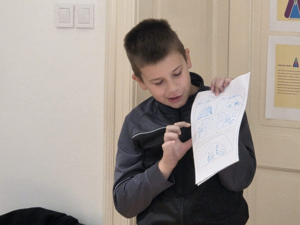 Na kraju smo rješavali kratki test da se vidi koliko smo zapamtili, a zatim smo crtali strip u kojem smo trebali prikazati život ljudi u nekom od povijesnih razdoblja. Kada smo završili izradu stripa, prezentirali smo i objasnili svoj strip. Svima nam je bilo zabavno i nadamo se da će nas učiteljica odvesti na još neku ovakvu radionicu.