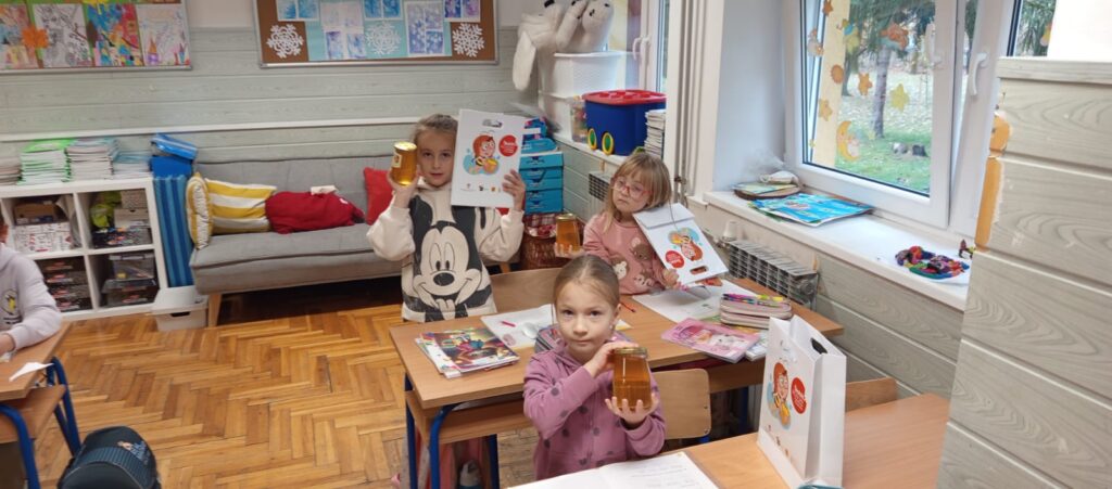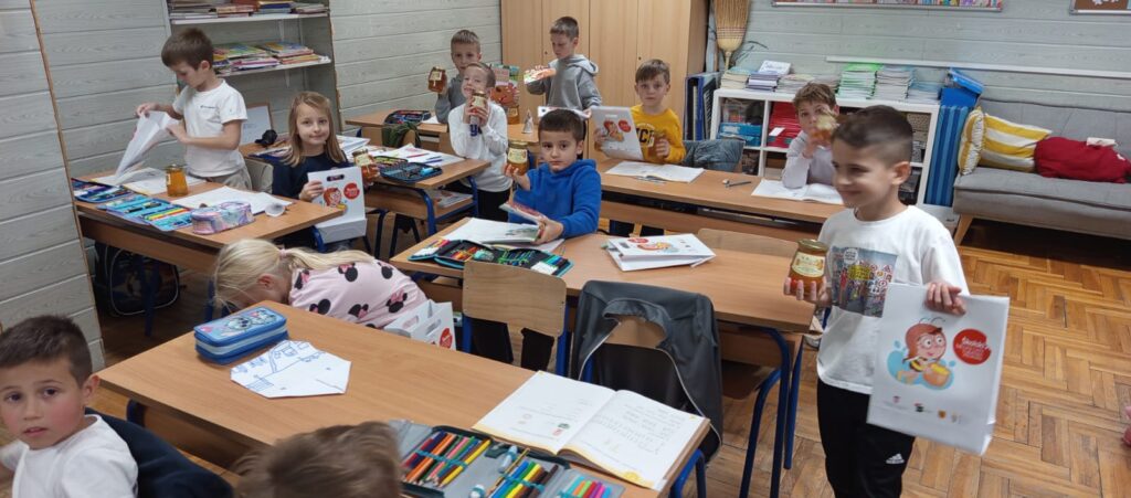 Svaki učenik dobio je svoju teglicu domaćeg hrvatskog meda, lijepo zapakiranu u tradicionalnu ili Nacionalnu staklenku, kao i edukativnu knjižicu te vrećicu s materijalima za učenje.