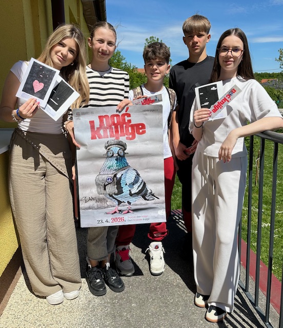U četvrtak 23. travnja 2026. u našoj smo školi obilježili Svjetski dan knjige. Učenici 5. d, 7. b, 8. a i 8. c razreda tijekom travnja su u knjižnici izrađivali blackout poeziju te su na Dan knjige pojedini učenici gotove radove dijelili djelatnicima škole i roditeljima u školskom dvorištu.