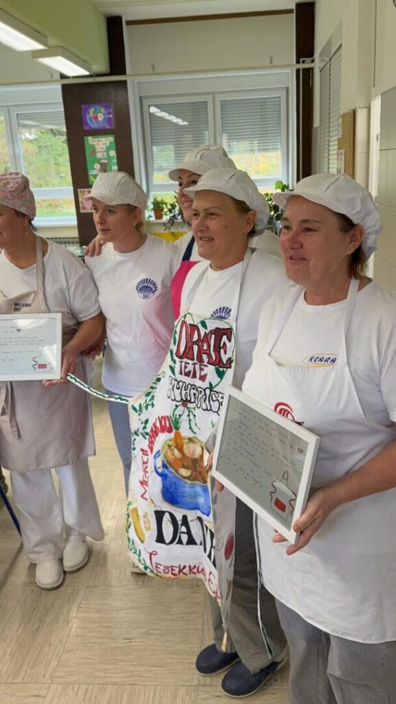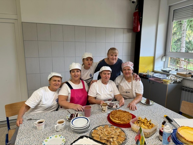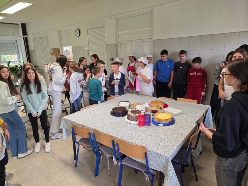 Vrhunac projekta dogodio se 20. listopada 2025., kada su učenici, uz pomoć svojih roditelja i učiteljice, pripremili odabrane njemačke specijalitete i u blagovaoni škole priredili iznenađenje za školske kuharice. Tom prigodom im se pridružila i ravnateljica škole Biserka Brkljačić, koja je zajedno s učenicima i učiteljima sudjelovala u uručenju prigodnih poklona – kuharica, zahvalnica i oslikane pregače – kao znaka zahvalnosti kuharicama za njihov svakodnevni trud, toplinu i brigu o učenicima i djelatnicima škole. Nakon službenog dijela uslijedilo je zajedničko druženje uz tradicionalne slastice njemačkog govornog područja: Schwarzwälder Kirschtorte, Sachertorte, Apfelstrudel, Bienenstich, Apfelauflauf, Kaiserschmarrni Käsekuchen. Ova lijepa aktivnost pokazala je kako učenje stranog jezika može biti kreativno, praktično i povezano sa stvarnim životom, ali i kako suradnja, međusobno poštovanje i zahvalnost čine školsku zajednicu bogatijom i toplijom. Učenici su kroz ovaj projekt razvijali komunikacijske vještine, suradnju, samostalnost i međukulturnu osviještenost, što su ujedno i temeljne vrijednosti koje promiče Erasmus+ projekt.